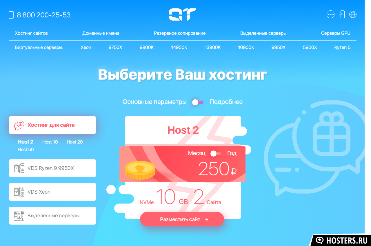 Российский хостинг-провайдер, оказывающий услуги виртуального хостинга, VDS и аренды серверов более 15 лет. Оборудование компании находится в Москве.
