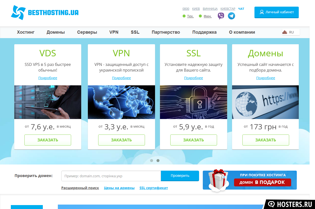 У Besthosting.ua имеется выбор среди 8 VPS-тарифов. Компания предлагает виртуальные серверы с системой на базе ядра Linux (виртуализация KVM). Трафик не имеет ограничений. Подробнее о тарифах →