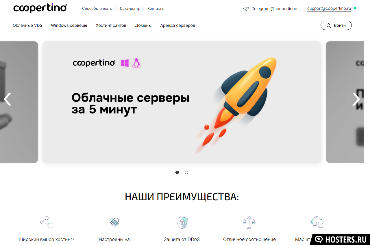 Coopertino на своем сайте предлагает несколько конфигураций серверов (dedicated) на базе процессоров Intel. Администрирование специалистами компании производится на платной основе, стоимость уточняйте у технической поддержки. В случае преждевременного расторжения договора аренды сервера, хостинг обещает вернуть неиспользованный остаток по счету.