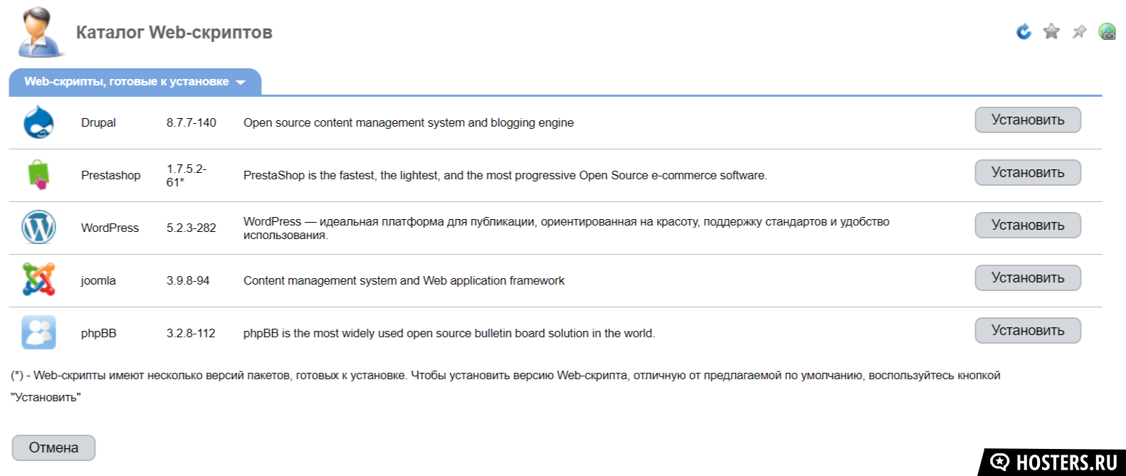 Управление аккаунтом происходит в ISPmanager - отличная панель управления; на мой взгляд, самая удобная из всех коммерческих панелей для виртуального хостинга.Предустановленные приложения