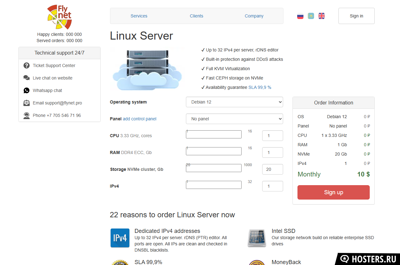 У Flynet есть один тариф VPS "Cloud VPS 1", в котором можно настроить все опции под свои задачи. Доступны VDS под управлением ОС на базе ядра Linux (виртуализация KVM). Трафик не имеет ограничений. Подробнее о тарифах →