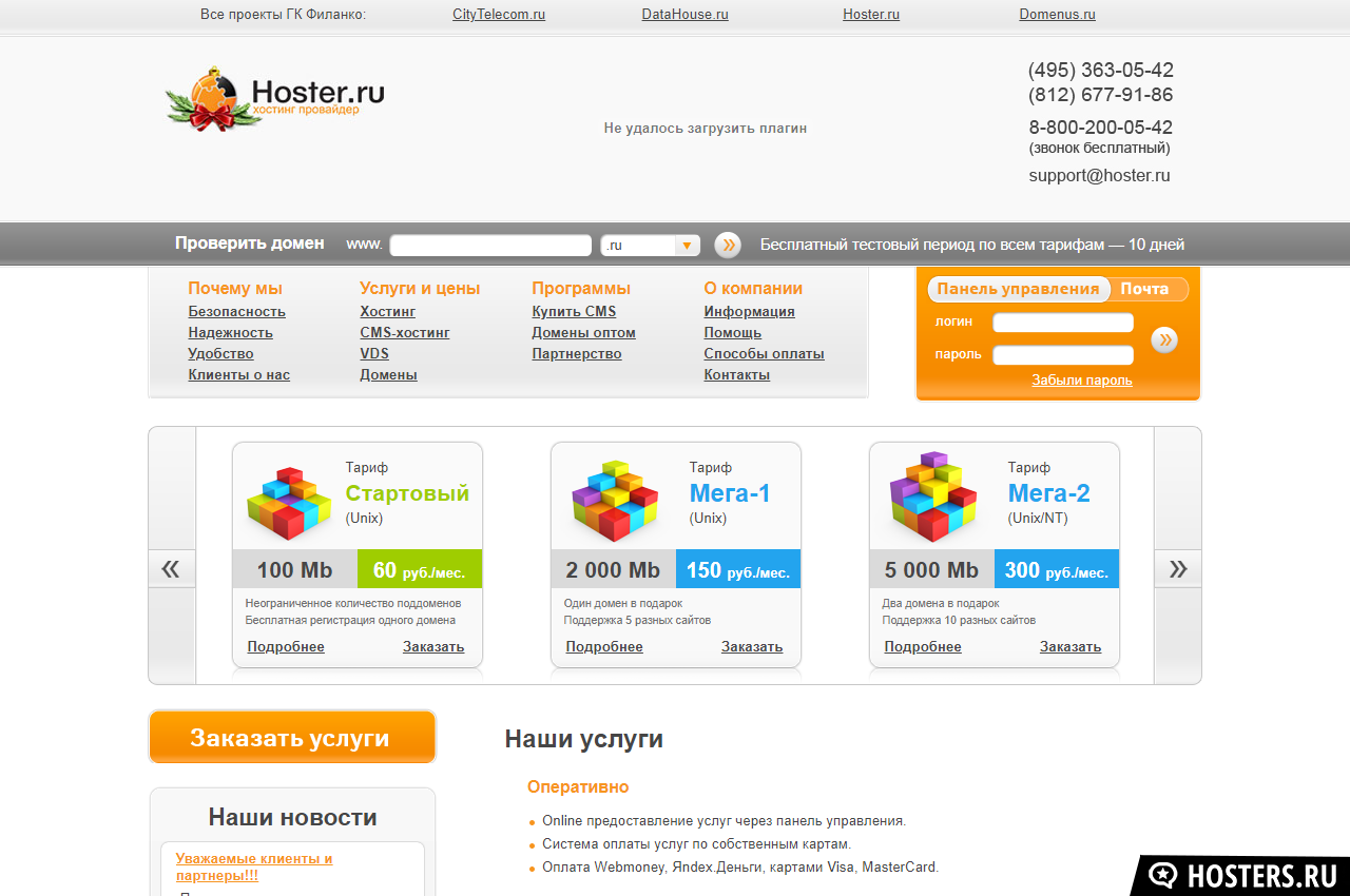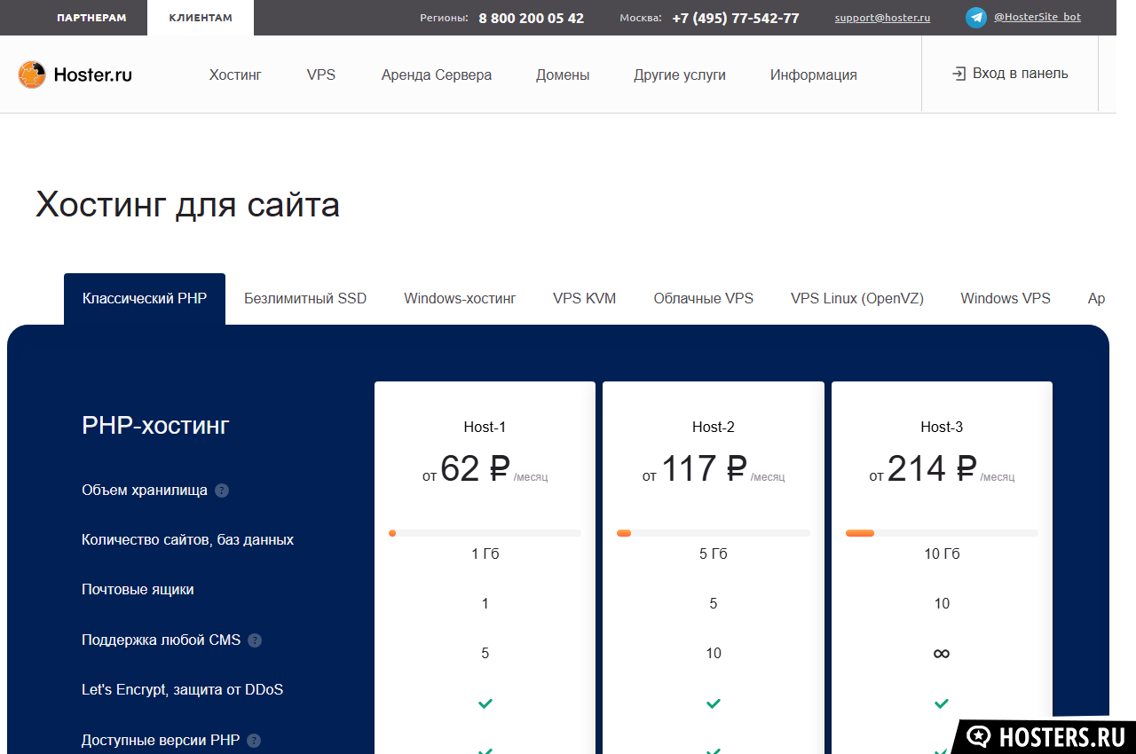 Управление хостинг-аккаунтом производится в панели собственной разработки. Если вы решили сменить хостинг провайдера, Hoster.ru бесплатно перенесет и настроит работу вашего сайта на своих мощностях. Для получения этой услуги напишите службе поддержки.Особенности
