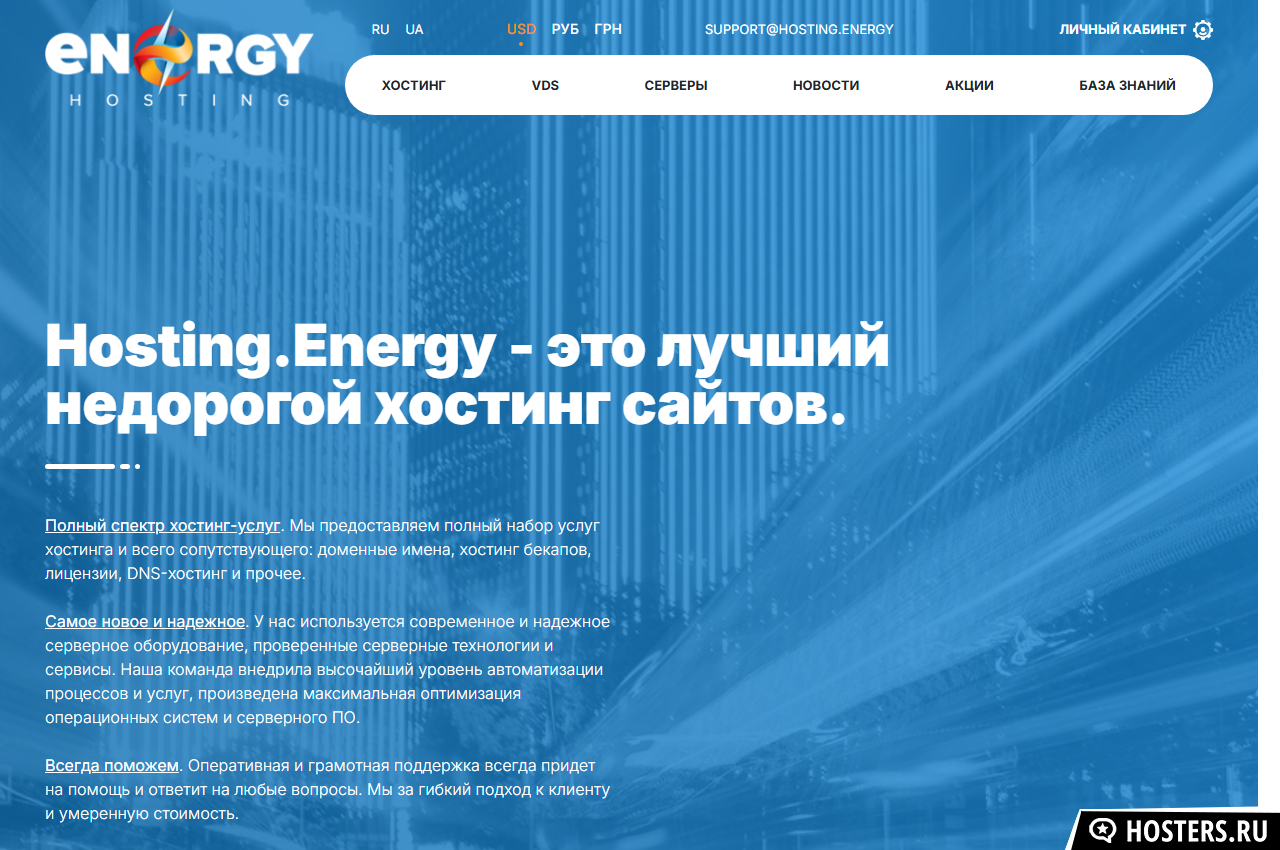 У Энергия (hosting.energy) имеется выбор из 4 VDS-тарифов. Помимо ОС вирт. сервера на базе ядра Linux, есть возможность приобрести VPS под FreeBSD (виртуализация KVM). Трафик неограничен. Подробнее о тарифах →