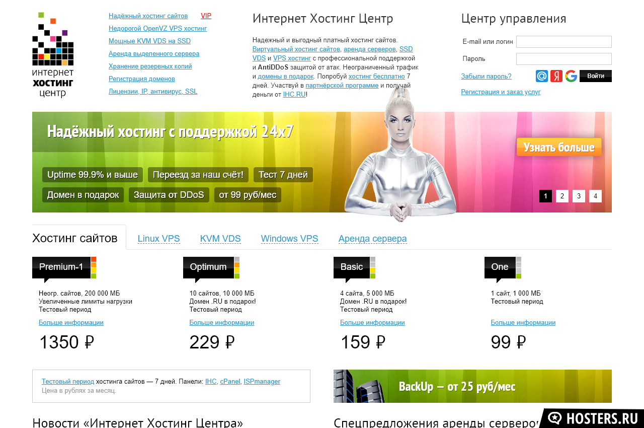 Управление аккаунтом хостинга осуществляется в cPanel, однако есть возможность использовать ISPmanager и ПУ собственной разработки. Если вы хотите поменять хостинг провайдера, Ihc.ru бесплатно перенесет и настроит работу вашего сайта на своих мощностях. Для осуществления переноса свяжитесь со службой поддержки. Более того, Интернет Хостинг Центр дарит 3 месяца оплаты, если вы переносите сайт с другого хостинга.Особенности